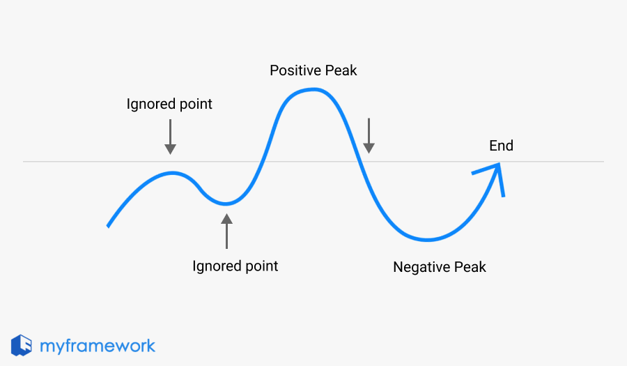 According to this rule, people's memories of an event don't necessarily align with how they felt during the entire experience. Instead, their recollections are shaped by two key moments: the peak (the most intense part) and the end.