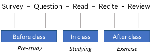 Survey and Question are equivalent to pre-study, the first R (Read) is studying, and the last 2R (Recite and Review) are equivalent to post-class review. So the model is not limited to efficient reading, but efficient self-study in many fields can also use this routine.